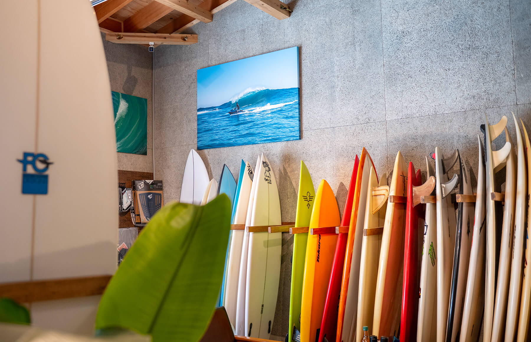 店内には、ロングボードから話題のオルタネイティブボードまで、さまざまなスタイルに対応するラインナップを揃えています。さらに、ご自身のスタイルに合わせたオリジナルボードのオーダーも可能です。海と向き合う時間を、自分らしい1本とともに。