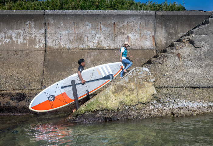 インストラクターと一緒に、体験場所のビーチまで徒歩または車で移動します。その日の海のコンディションに合わせて、SUPやサーフィンを安全に楽しく体験!