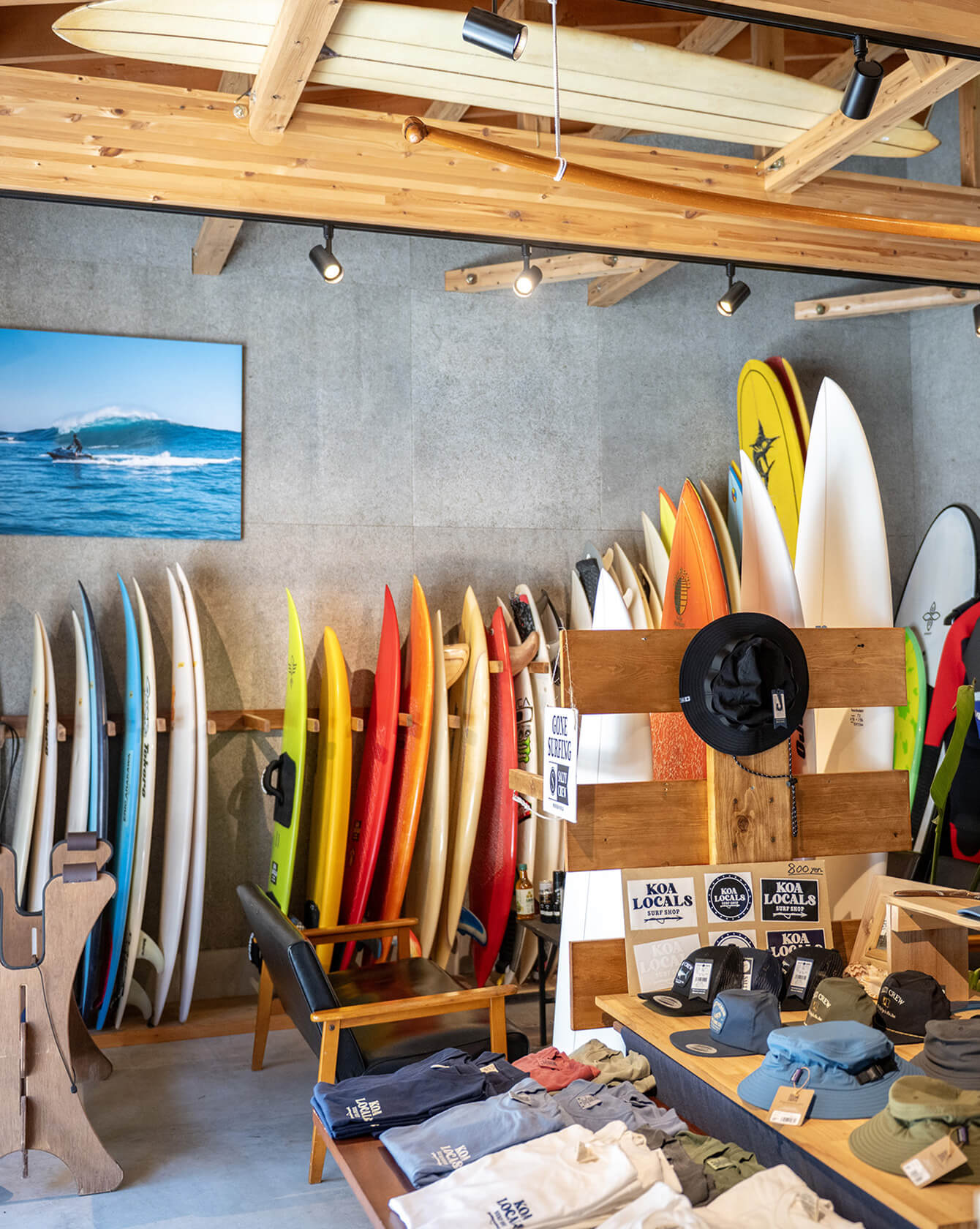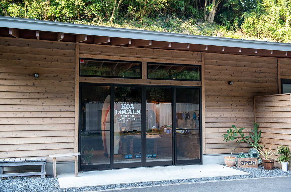 海のすぐそば、山の緑に包まれた静かな場所に佇むサーフショップ、KOA LOCALS SURF SHOP。ここは、サーフィンやSUPなどアクティビティの拠点でありながら、自然の中で海とつながる暮らしを楽しむためのベースでもあります。
